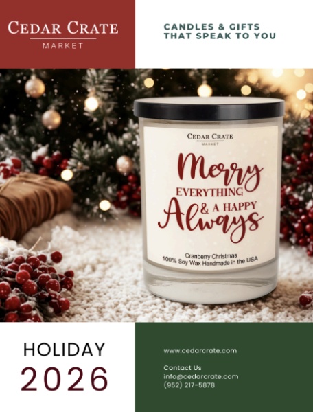 Gifts should make people smile or laugh out loud. Every Cedar Crate Candle is hand-poured in small batches in Minnetonka, Minnesota, using soy wax from locally grown soybeans and premium fragrance oils. The result? A clean burn, great scent throw, and a gift that feels as good as it smells.